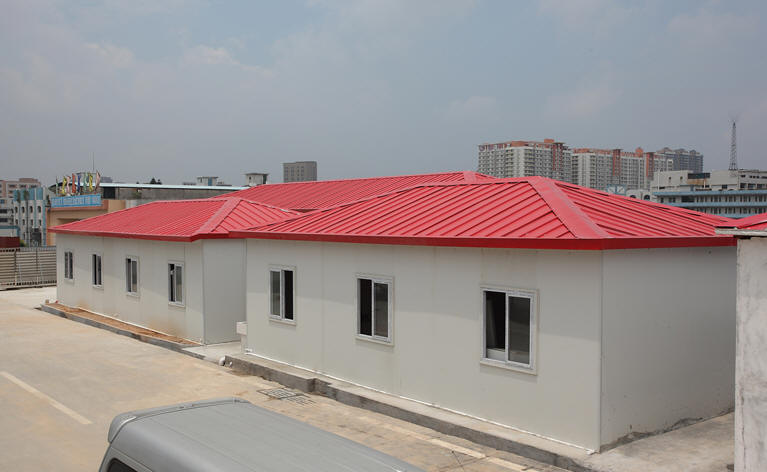 Convenient storage and transport----few types of components, convenient for storage, high transport efficiency, a 40HQ container can load about 300 square meter flat roof of T-type house.